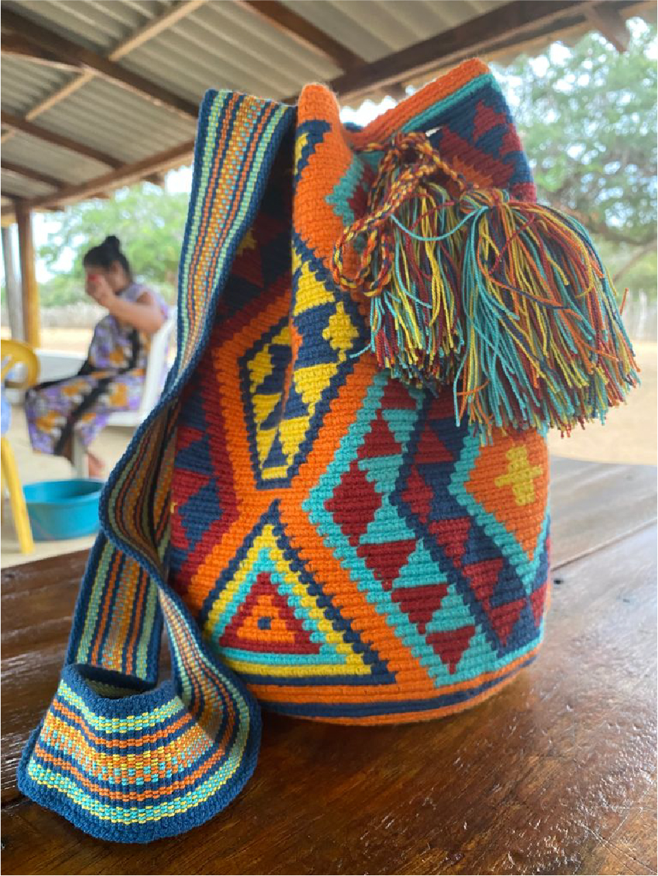 Las mochilas son la máxima expresión del tejido Wayúu. la tradición Wayúu, desde tiempos inmemoriales las mujeres se dedican al tejido. Las mujeres Wayúu aprenden a hacer las mochilas durante el período llamado “blanqueo” o también denominado “encierro”. Durante este tiempo, las jóvenes deben permanecer en contacto solo con sus parientes mujeres que las preparan a ser mujeres Wayúu (les enseñan las labores del hogar, entre ellas a tejer). Cada bolso lo elabora una sola mujer con su diseño propio y original. Por eso es que cada artesanía Wayúu es completamente exclusiva.